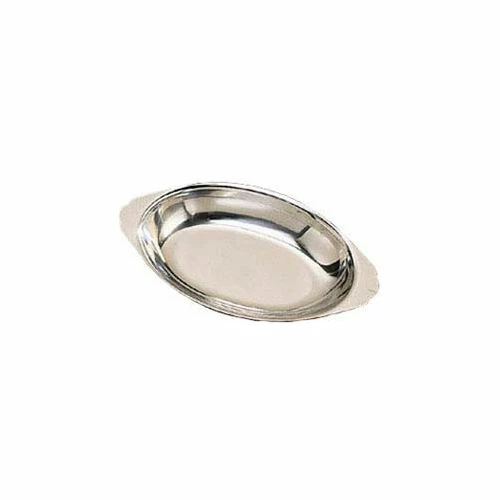 Au Gratin Dish, oval, 20 oz. capacity, 10-3/4″ x 6″ top outer dimensions, 8-1/2″ x 5-1/2″ top inner dimensions, 6-1/2″ x 3-1/2″ bowl inner dimensions, stainless