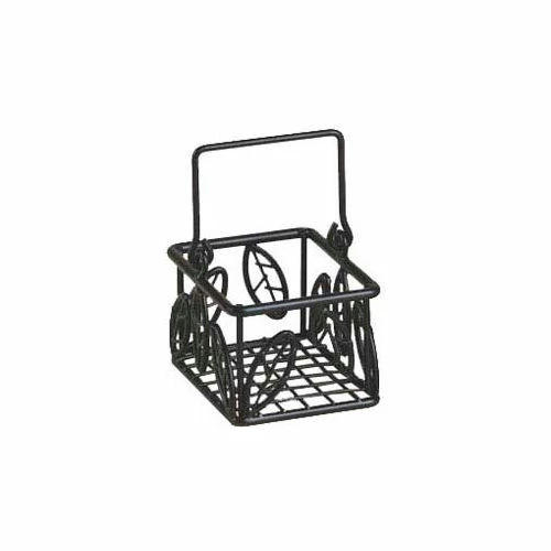 Wrought Iron Sugar Packet Baskets, These dainty little black baskets are the perfect size and complement so many other Ironworks tabletop items. They are available in the popular leaf or scroll pattern. 5″ x 3″ x 3″ (12.7 x 7.6 x 7.6 cm). Leaf