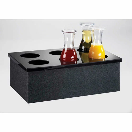 These carafe collars are designed to fit any of our 12″ x 20″ ice housings to help organize and easily display carafes at your restaurant, hotel, or catered event. Product Features: Fits any Cal-Mil Ice Housing. Each Hole Measures 4-1/2″ Diameter. Dimensions: 12W x 20H–6 Hole.