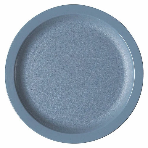 Made of virtually unbreakable polycarbonate for long lasting durability. Textured surface is stain, odor and scratch-resistant. National Sanitation Foundation approved for food service. Ideal for schools, cafeterias, day care centers and healthcare facilities. Type is Narrow Rim Plate. Shape is Round. Color is Slate Blue. Package quantity is 48. 5 Year Limited Warranty.