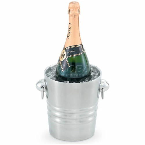 For clean, classy champagne and wine presentations. Stainless Steel. Double wall construction providesinsulation to keep champagne cold. Satin finish exterior and interior minimizes wear. Condensation will not form on exteriorfor clean presentation. Small footprint takes up littletable space. Durable and will not crack or breaklike plastic or marble buckets. Ample room for use with ice butnot required. May be used with Vollrathยฎ Wine Bucket Stand Stainless Steel – Single Bottle. 2.1 quart capacity. Sold in package quantity of 6. Priced each.