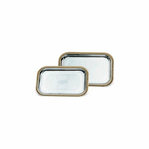 This value priced tray complements casual or formal banquet applications and are ideal for catered events. Various styles to meet your serving needs. Tough chrome plating provides long life. Mirror-finish. Surface safe for direct food contact. Premium product at an economy price. 24K gold trim. Not dishwasher safe. Recommend cleaning with sponge, mild detergent, and warm water. Rectangular shape. 19-1/2″L x 14″W overall. Sold in package quantity of 6. Priced each.