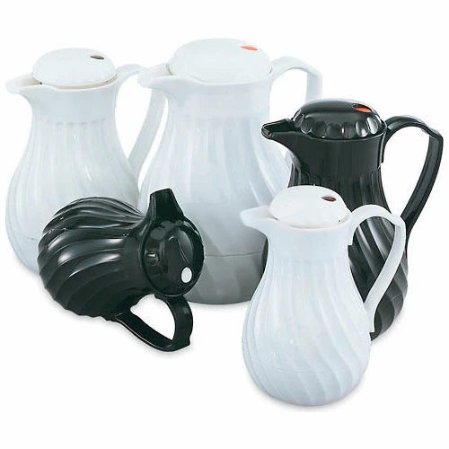 Swirlserve insulated server keeps beverages hot or cold for hours. Customer customization, exclusively available from Vollrathยฎ, easily identifies decaffeinated and regular coffee and other drinks like milk or tea. Not for use in microwave. Orange, brown, and white tabs allow for easy differentiation. Durable polycarbonate inner liner is odorless and stain resistant. Polyurethane insulation in body and cover. Exterior looks like porcelain but is actually impact-resistant plastic. Hand wash only. AdditionalSwirlServe covers available. 20 ounce capacity. Sold in package quantity of 12. Priced each.